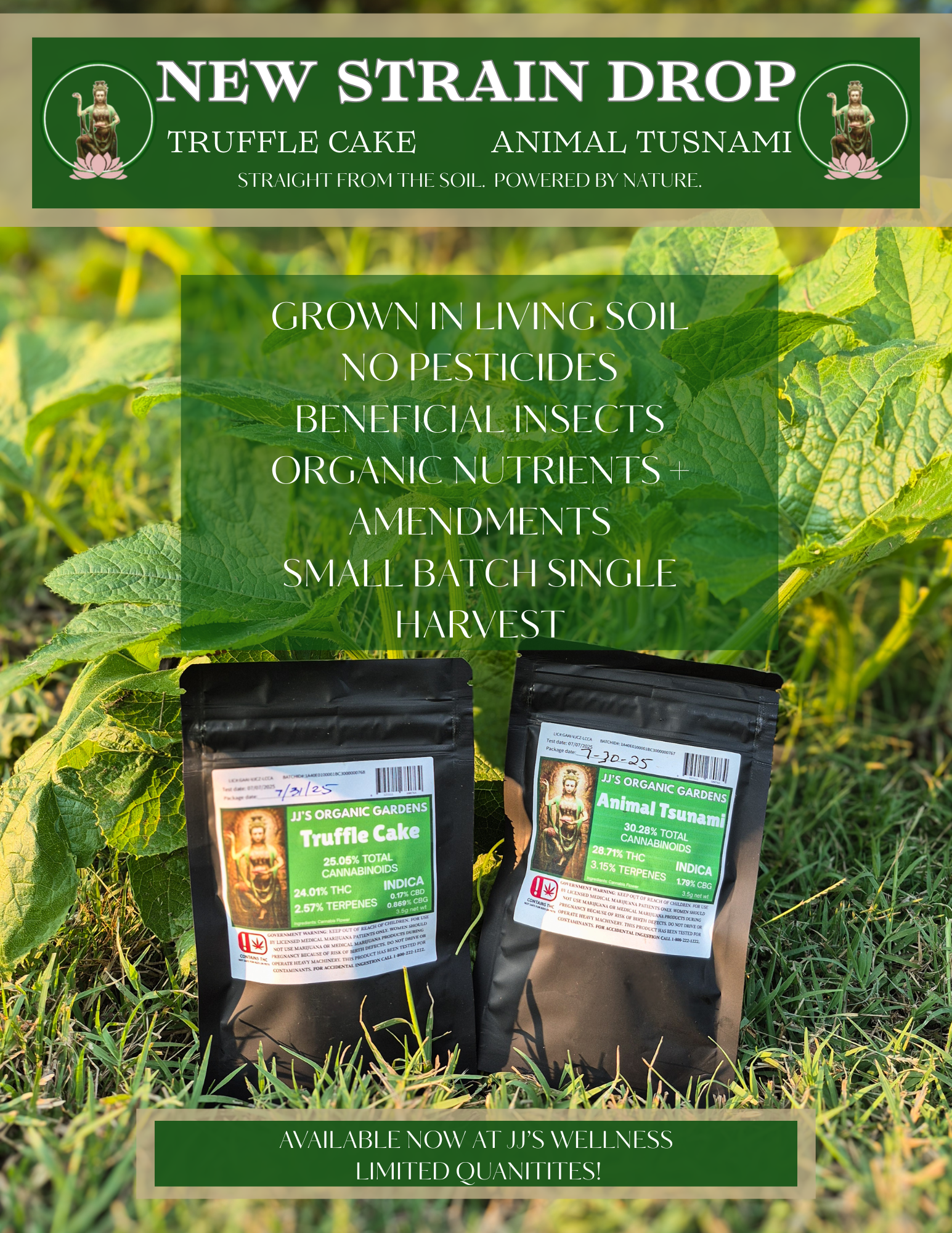 JJ’s Wellness medical cannabis dispensary is thrilled to announce a brand-new flower drop straight from JJ’s Organic Gardens!
